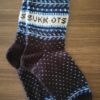 Villasest lõngast meeste sokid on kootud käsitsi varrastel. Sokkidel on võrukeelne tekst, mis ütleb, et need on minu sokid. Mustriga kootud sokid on vastupidavamad, soojemad ning teevad ka kandja meele rõõmsamaks.
